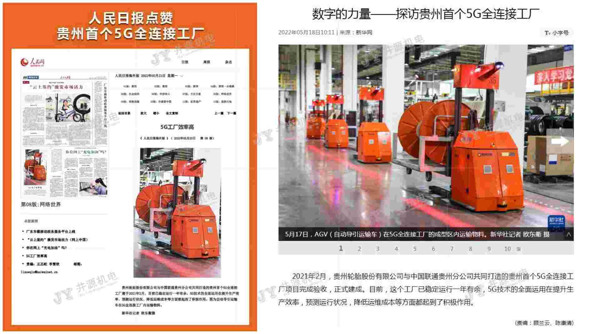 2021年2月,井源機電為貴輪工廠規(guī)劃實施AGV智能物流系統(tǒng),目前已穩(wěn)定運行一年有余。近期,貴輪5G全連接工廠得到人民日報、人民網(wǎng)、新華社等各界媒體的關(guān)注、點贊,作為此次項目AGV智能物流系統(tǒng)供應(yīng)商,井源深感喜悅,同時,也祝賀我們的客戶——貴輪,得到各界的認(rèn)可和支持。