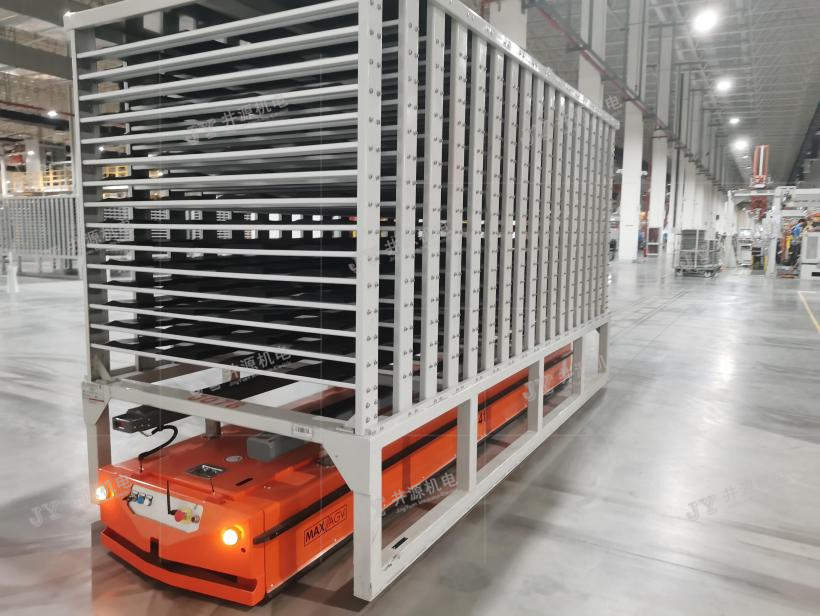 在此過程中,井源技術(shù)團隊根據(jù)這些工裝/臺車尺寸、結(jié)構(gòu)、承載重心等設(shè)計合適的AGV,在AGV系統(tǒng)調(diào)度下,實現(xiàn)不同工裝、不同負(fù)載、不同工藝間有條不紊的運輸,以及不同區(qū)域的智能化倉儲管理。AGV的運用,替代了3臺堆垛機和出入庫的輸送線,為企業(yè)節(jié)省成本300多萬元。